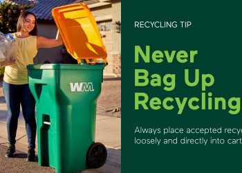 Waste Management – February Recycling Tip: Help keep the recycling stream clean by only placing accepted materials into recycling carts. Only recycle clean cardboard, paper, and metal and plastic containers. Also, be sure to place recyclables directly into your curbside carts. Never bag up recyclables!