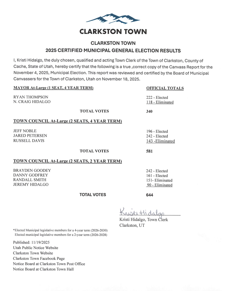 Posted on November 19, 2025, Edited November 19, 2025 by Deputy Clerk 2025 Certified Election Results