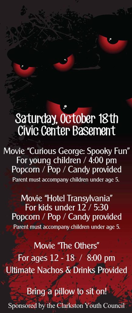 Sponsored by the Clarkston Youth Council. Come have some Halloween fun this Saturday!