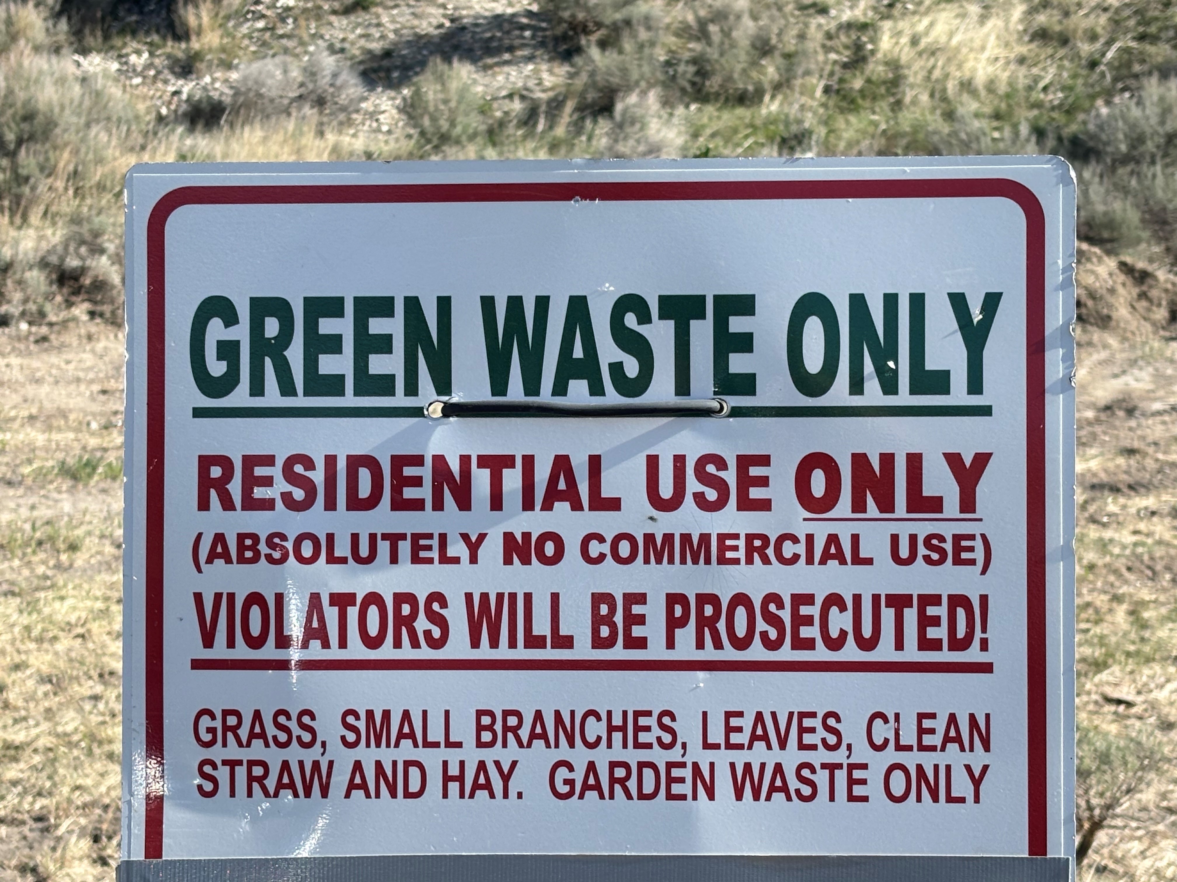 - Dump NORTH of the Green Waste Sign - on the EAST side of the road