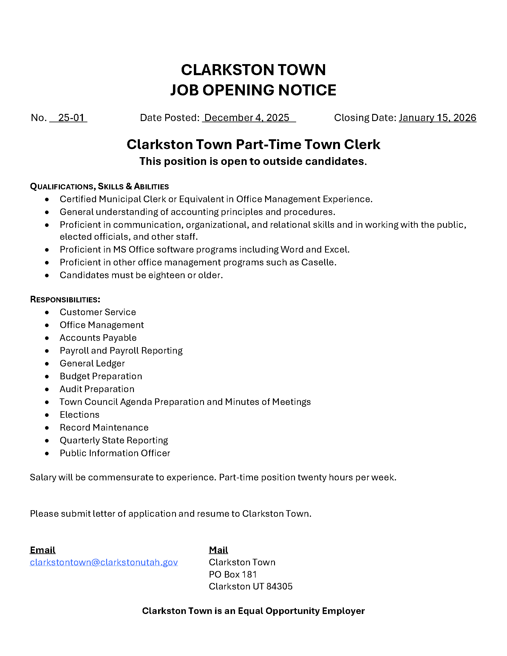 Town Clerk Job Opening